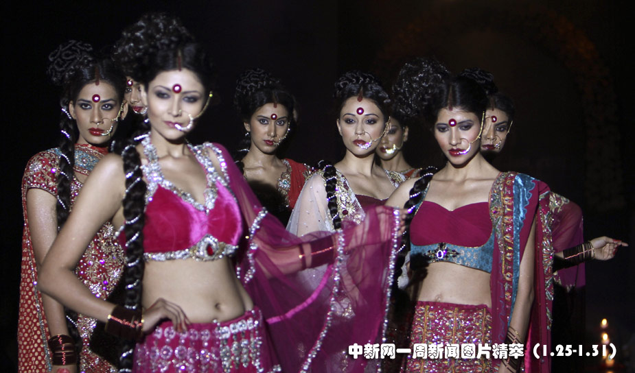 1月30日(周六),在印度班加羅爾時裝周上,眾多靚模閃亮登場。圖片來源:中國新聞網(wǎng)