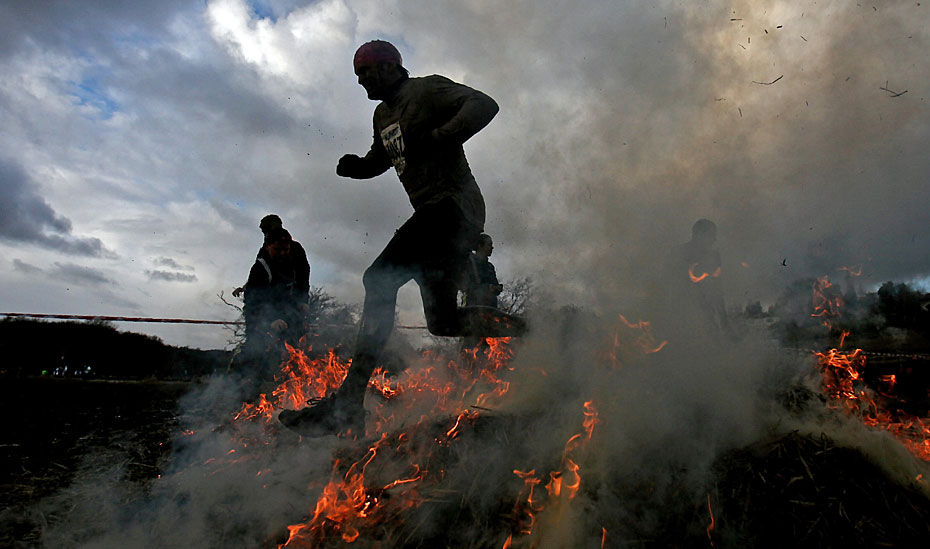 1月31日,在英國小鎮(zhèn)Perton舉行了一場硬漢挑戰(zhàn)賽。圖片來源:中國新聞網(wǎng)