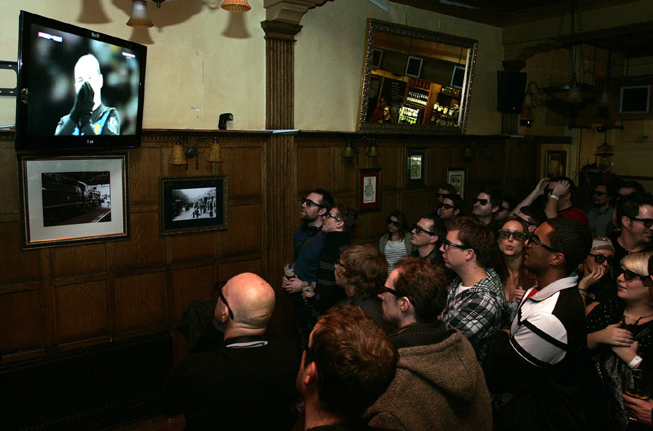 圖為球迷在倫敦的酒吧里享受3D足球直播。北京時間2月1日,英國體育頻道首次使用3D技術對阿森納與曼聯(lián)的比賽進行電視直播。據(jù)悉,今年南非世界杯也將進行3D轉(zhuǎn)播。