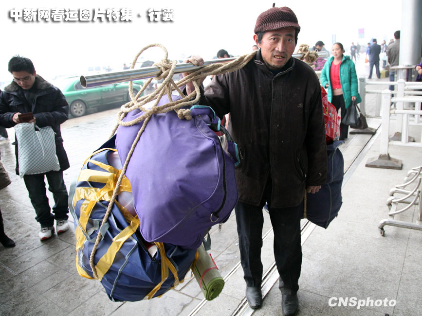 春節(jié)臨近,出門在外的人拎著大包小包地回家過年。這行囊或重或輕,可能是帶給父母的孝敬,也可能是帶給愛人的心動(dòng),但每個(gè)行囊中一定都會(huì)裝著人們一年來收獲的喜悅之情。中新社發(fā) 鐘山 攝