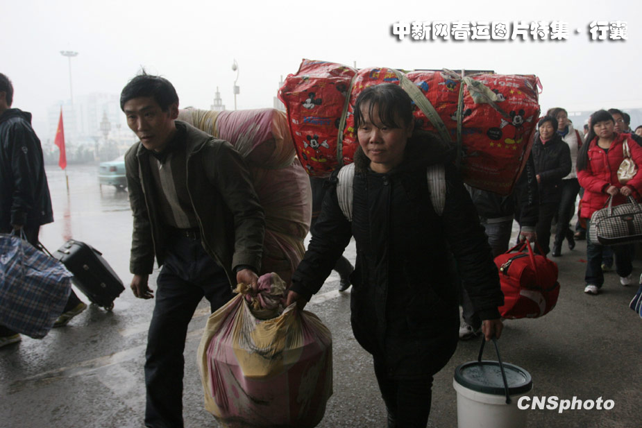 春節(jié)臨近,出門(mén)在外的人拎著大包小包地回家過(guò)年。這行囊或重或輕,可能是帶給父母的孝敬,也可能是帶給愛(ài)人的心動(dòng),但每個(gè)行囊中一定都會(huì)裝著人們一年來(lái)收獲的喜悅之情。中新社發(fā) 孫新明 攝