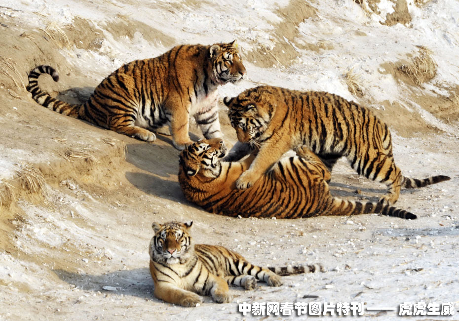 1月13日,黑龍江東北虎林園,老虎在雪地中嬉戲追逐。(王少華 張書儉 攝) 圖片來源:中國新聞網(wǎng)