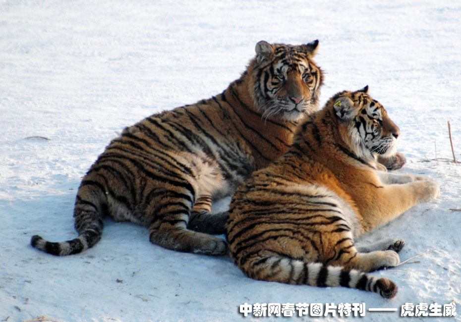 1月13日,黑龍江東北虎林園,老虎在雪地中嬉戲追逐。(王少華 張書儉 攝) 圖片來源:中國新聞網(wǎng)