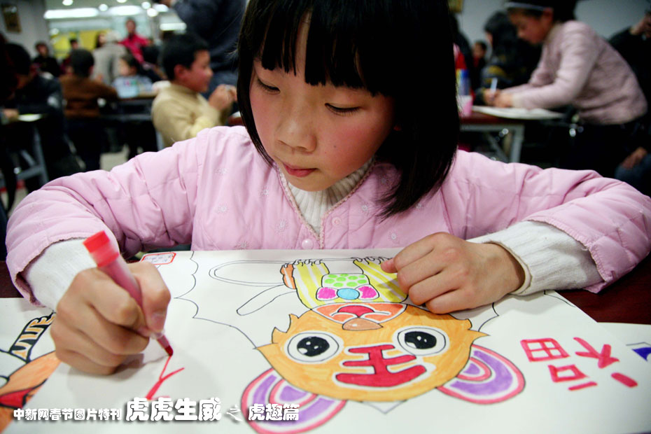 1月23日,“百童畫(huà)百虎”活動(dòng)在南京鳳凰書(shū)城舉行,約100名4歲到14歲的小朋友現(xiàn)場(chǎng)切磋畫(huà)技,畫(huà)出自己心中最可愛(ài)的老虎模樣,迎接即將到來(lái)的虎年。中新社發(fā) 鐘山 攝