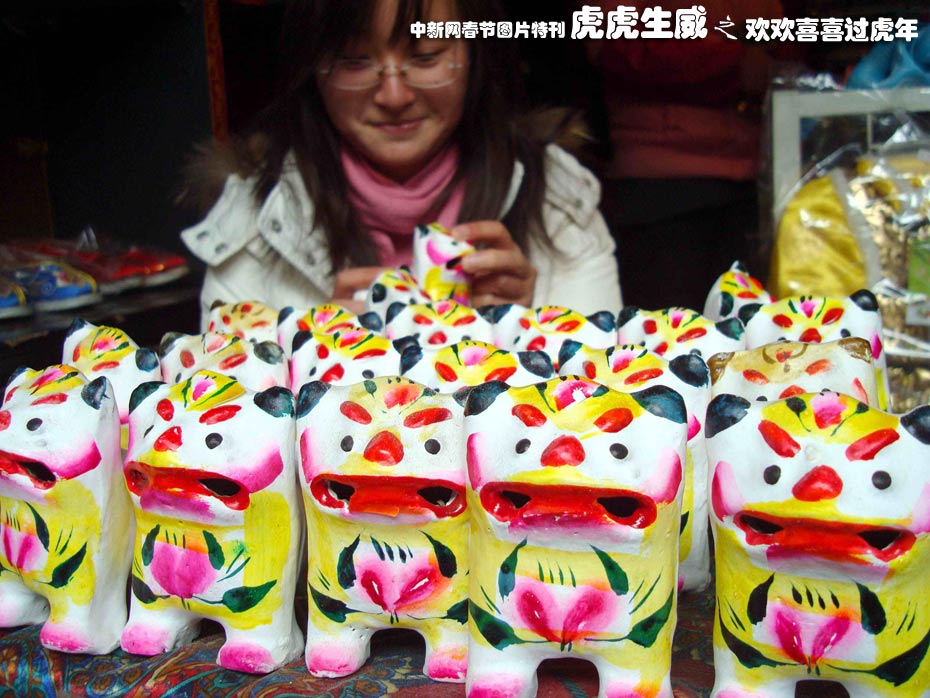 1月15日,虎年臨近,蘇州山塘街民間藝人制作的傳統(tǒng)玩具“皮老虎”引起了許多市民和游人的濃厚興趣。“皮老虎”是蘇州民間傳統(tǒng)玩具,用膠泥燒制虎頭與虎尾,中間用軟羊皮將虎身粘合,在虎口中置一哨,用手輕輕一拉一合,便可發(fā)出悅耳動(dòng)聽(tīng)的皮虎歌唱。中新社發(fā) 王建康 攝