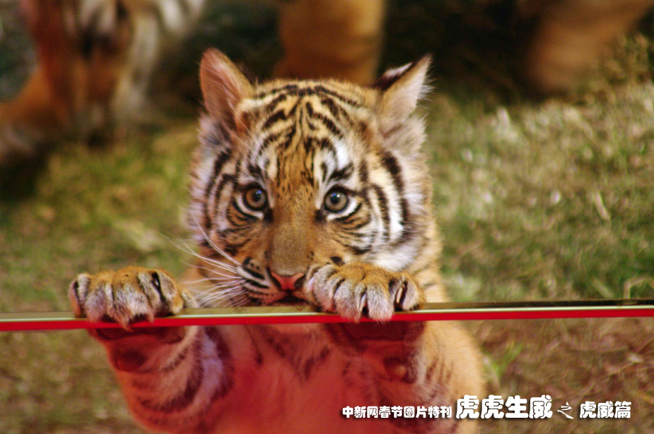 1月30日,虎年將至,重慶某商廈開展野生動物保護(hù)法宣傳,“請”來幾只活潑可愛的小老虎與市民近距離接觸。中新社發(fā) 金城 攝