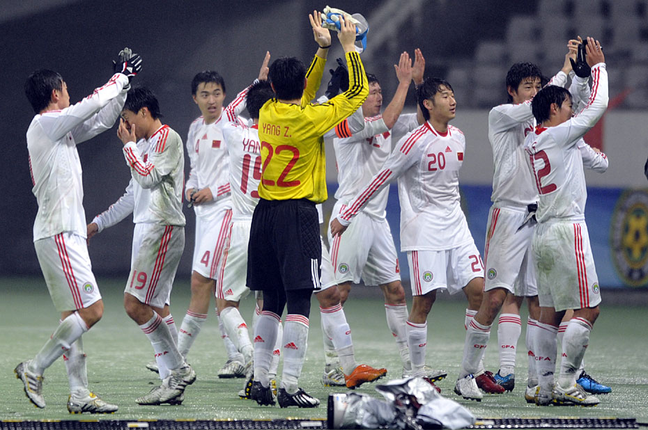 2月10日晚18:15,中國(guó)男足國(guó)家隊(duì)迎來(lái)了東亞四強(qiáng)賽第二場(chǎng)與韓國(guó)隊(duì)的比賽,憑借著于海、郜林和鄧卓翔的進(jìn)球,國(guó)足3:0完勝韓國(guó),讓“恐韓癥”成為歷史。圖片來(lái)源:中國(guó)新聞網(wǎng)