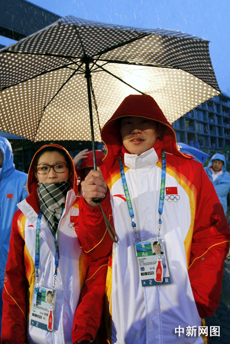 當?shù)貢r間2月10日,中國代表團在溫哥華冬奧會奧運村舉行升旗儀式。升旗儀式結(jié)束后,中國代表團團長劉鵬帶領(lǐng)代表團成員展開橫幅高聲向全體國人送上新春祝福。中新社記者 盛佳鵬 攝