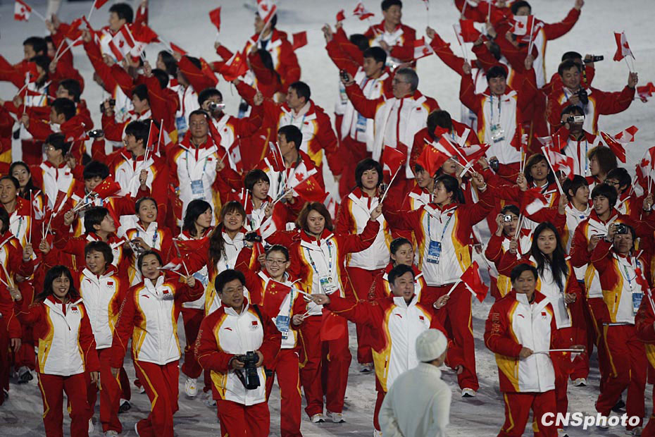 圖為中國(guó)冬奧代表團(tuán)運(yùn)動(dòng)員入場(chǎng)。