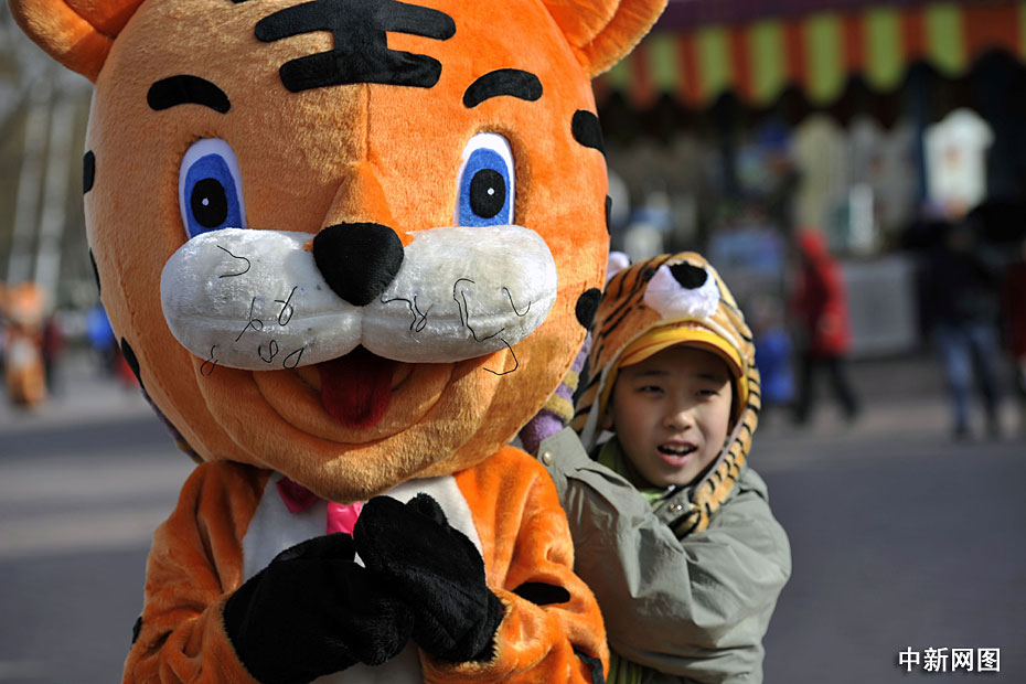 2月14日,農(nóng)歷正月初一,北京各大傳統(tǒng)廟會(huì)、洋廟會(huì)爭相開幕,許多游客頭戴虎年飾品開心游廟會(huì)。中新網(wǎng)記者 金碩 攝