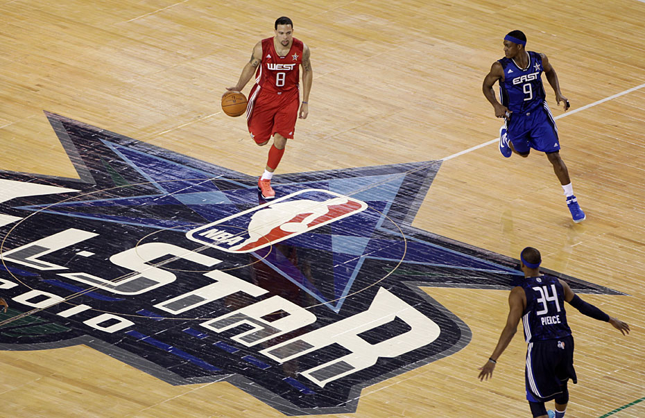 圖為全明星賽賽場上,西部明星隊正在進攻。
