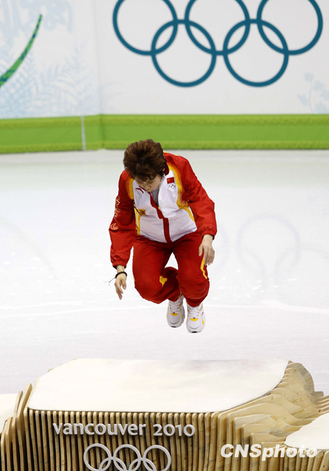 2010年溫哥華冬奧會短道速滑女子500米決賽北京時間2月18日上午11時許舉行,中國選手王濛獲得冠軍,成為中國冬奧歷史上第一位成功衛(wèi)冕的冠軍,中國隊也實現(xiàn)了這個項目的冬奧三連冠。圖為王濛“飛”上領獎臺。中新社發(fā) 盛佳鵬 攝 圖片來源:中國新聞網(wǎng)