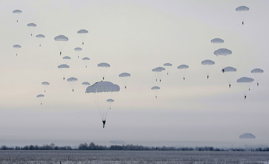 2月18日,俄羅斯第98空降師在莫斯科以東320公里的伊萬諾沃市附近舉行雪地空降演習(xí)。圖片來源:中國新聞網(wǎng)