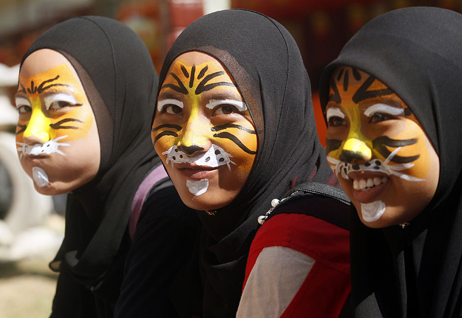 2月20日,馬來西亞民眾圍聚在首都吉隆坡附近的佛光山東禪寺,紛紛將自己繪成老虎的樣子,呼吁大家保護野生虎。圖片來源:中國新聞網(wǎng)