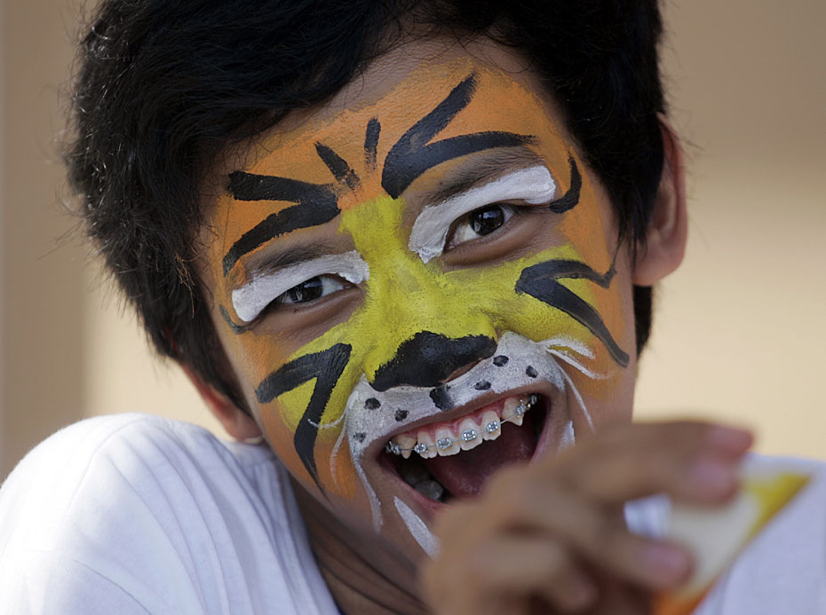 馬來(lái)西亞民眾繪虎面呼吁保護(hù)野生虎
