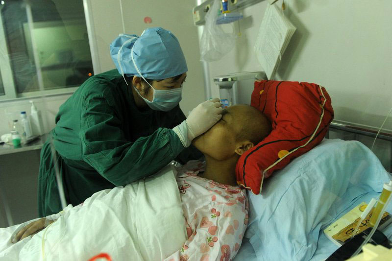 圖為病房?jī)?nèi)邵帥的母親被護(hù)士照料。朱嘉磊/CFP