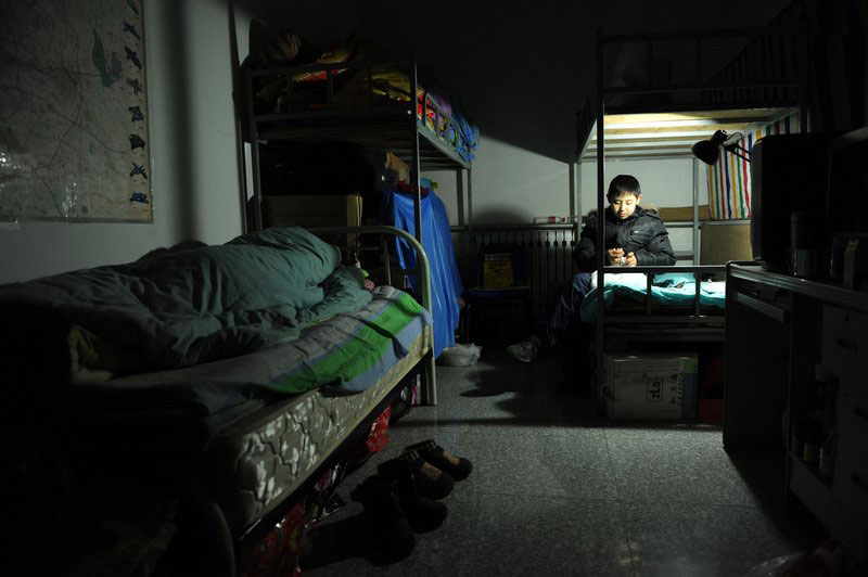 圖為回到媽媽朋友幫忙的房間內(nèi),姥姥已經(jīng)入睡,邵帥開著臺燈整理著東西。朱嘉磊/CFP