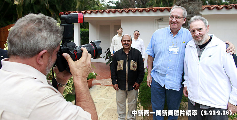 24日(周三),在古巴哈瓦那,巴西總統(tǒng)盧拉手持相機(jī)為巴西交通部部長和前古巴領(lǐng)袖卡斯特羅(Fidel Castro)拍照。