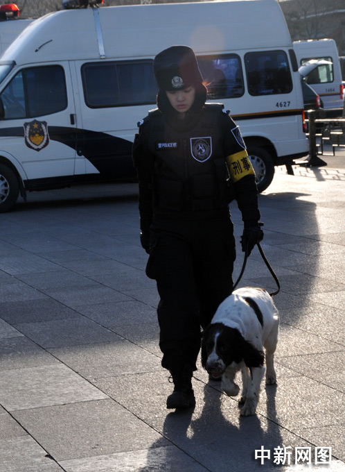 3月5日上午9時,十一屆全國人大三次會議在北京隆重開幕。國務院總理溫家寶作政府工作報告。圖為圖為人民大會堂外的安檢處。中新網(wǎng)記者 吳歆 攝