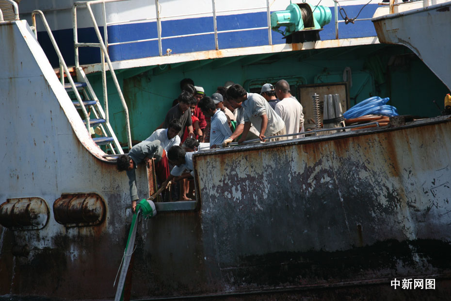 09年4月在西印度洋遭索馬里海盜挾持的臺灣遠洋漁船“穩(wěn)發(fā)161號”,歷經各方營救,終于在遭挾持10個多月后,包括船長顏勝男等共28人返回高雄港。圖片來源:中國新聞網
