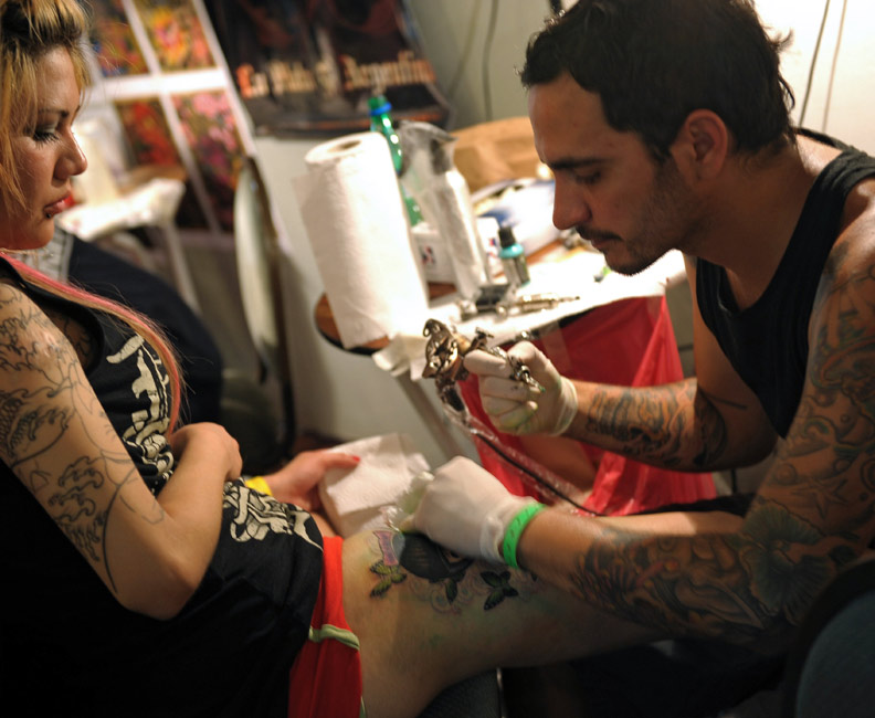 當(dāng)?shù)貢r(shí)間3月7日,第六屆國(guó)際紋身展在阿根廷首都布宜諾斯艾利斯舉行。來(lái)自美國(guó)、法國(guó)、西班牙、墨西哥、智利、巴西等國(guó)家的紋身高手前來(lái)獻(xiàn)藝。圖片來(lái)源:中國(guó)新聞網(wǎng)
