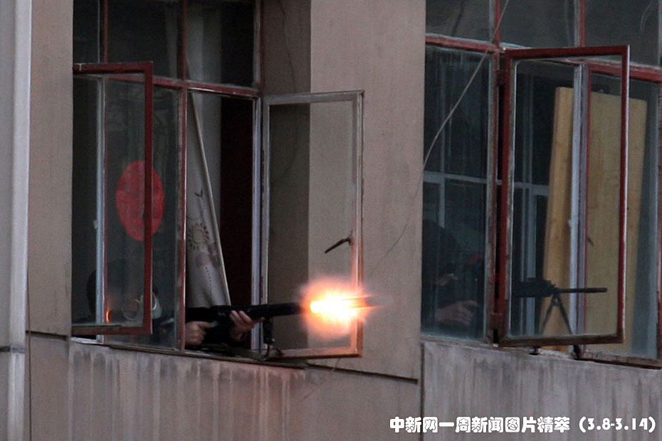 周四,甘肅蘭州,警方向槍殺特警嫌犯的藏匿點開火。當(dāng)天,轟動全國的蘭州槍擊案嫌犯付曉霖被警方發(fā)現(xiàn),嫌犯躲進(jìn)一居民樓內(nèi)。雙方對峙長達(dá)11個小時,期間人質(zhì)被解救,最終特警破門進(jìn)入嫌犯所在屋內(nèi)將其擊斃。圖片來源:中國新聞網(wǎng)