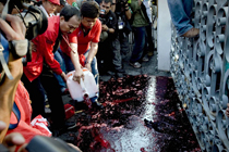 "紅衫軍"潑灑血液施壓