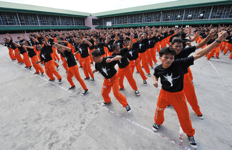近日,在菲律賓超過1500名囚犯在監(jiān)獄中集體學習已故歌壇巨星杰克遜的舞蹈,以此來激起他們生活的斗志。圖片來源:中國新聞網