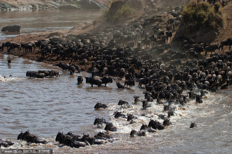 3月17日消息,捷克野生動(dòng)物攝影師瓦拉夫·希爾哈(Vaclav Silha)在肯尼亞馬賽瑪拉(Masai Mara)國(guó)家保護(hù)區(qū)拍到了罕見的牛羚大遷移場(chǎng)面。上百萬(wàn)牛羚集體穿越馬拉河,同時(shí)為了防止被水中的鱷魚咬到及逃避岸邊叢林里的老虎,牛羚群制造出巨大的聲響并急沖到對(duì)岸。barcroftmedia/CFP