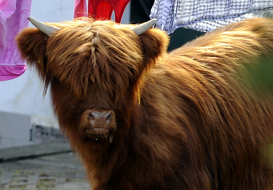3月18日,德國(guó)一頭蘇格蘭高地牛來到一居民院內(nèi)懶洋洋的曬太陽(yáng),最后經(jīng)過獸醫(yī)的麻醉和消防員協(xié)力才將這頭蠻力十足的家伙“制服”。圖片來源:中國(guó)新聞網(wǎng)
