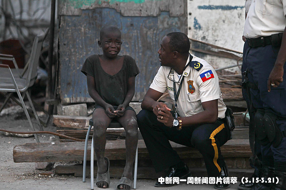 15日(周二),海地,警方正在向一名目擊了太子港貧民窟槍戰(zhàn)的兒童詢問情況。