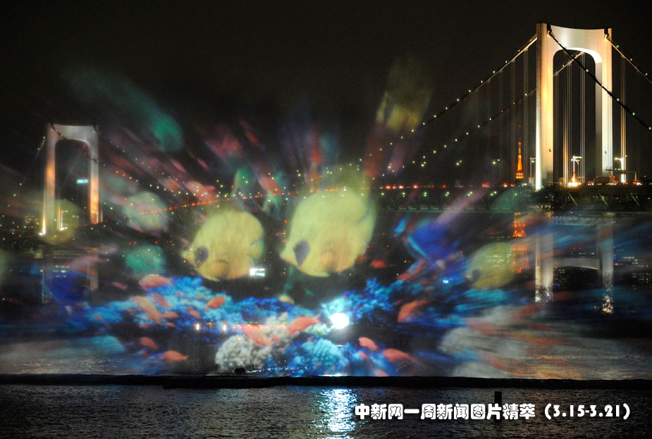 19日(周五)晚,在日本東京灣上演了一場(chǎng)美輪美奐的“海上幻燈。
