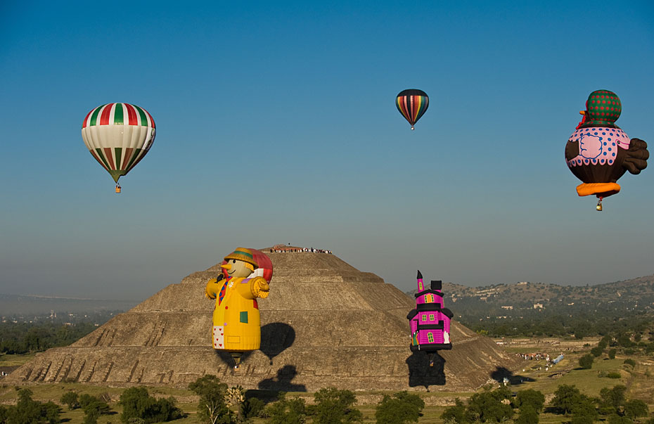 當(dāng)?shù)貢r(shí)間3月21日,熱氣球從墨西哥特奧蒂瓦坎上空飛過。墨西哥近日在特奧蒂瓦坎附近舉行熱氣球節(jié)迎接春分的到來。圖片來源:中國新聞網(wǎng)