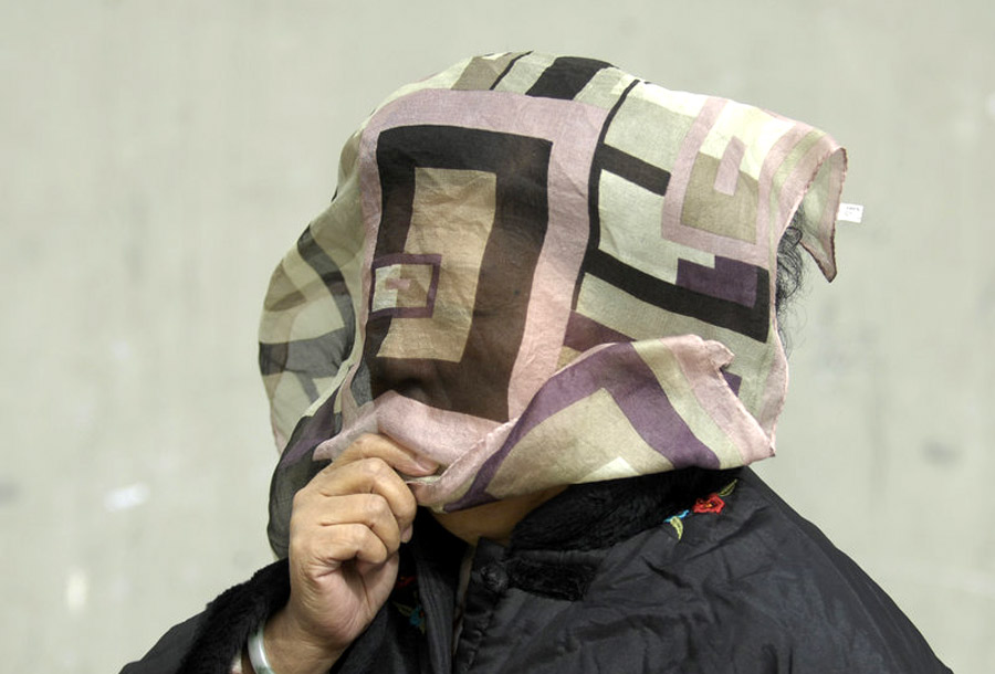 22日,天津街頭一位裹著紗巾的行人。xiaochunhu 攝