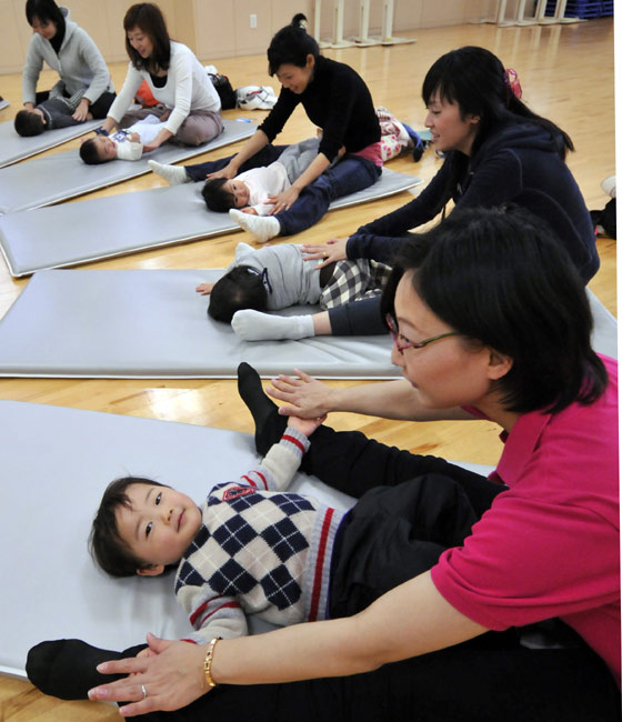 3月24日,在日本橫濱市的一堂母嬰桑巴課上,媽媽們帶著自己的寶寶一起參加舞蹈訓(xùn)練。 凡是孩子年齡在三個(gè)月到兩歲之間的母親都可以到這里參加母嬰舞蹈課,課程包括桑巴、華爾茲、布魯斯等。