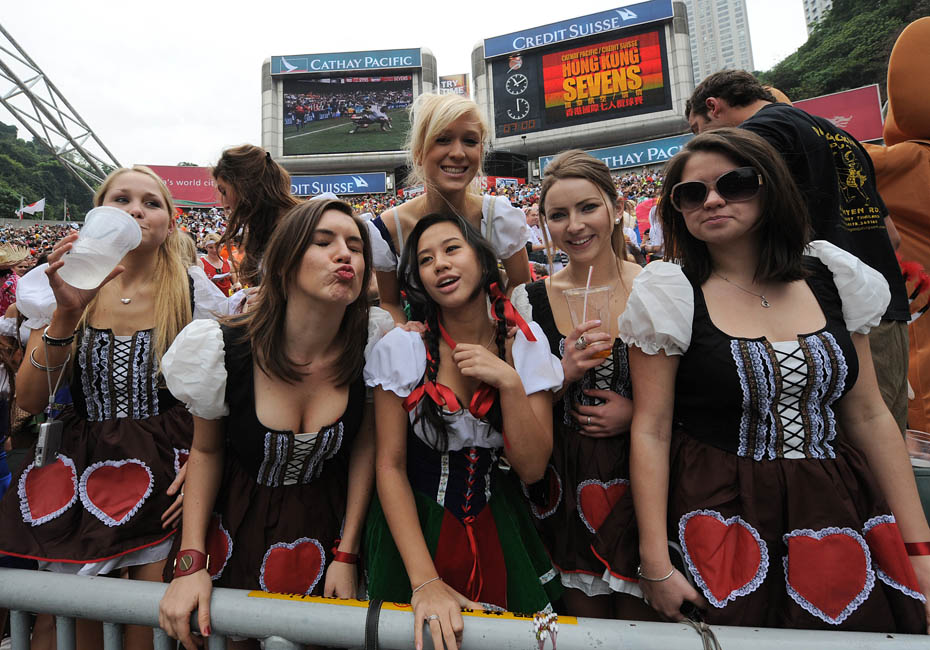 近日,“香港國(guó)際七人欖球賽”在大球場(chǎng)開(kāi)鑼。來(lái)自世界各地的球迷盛裝捧場(chǎng),狂樂(lè)連場(chǎng)賽事。圖片來(lái)源:中國(guó)新聞網(wǎng)