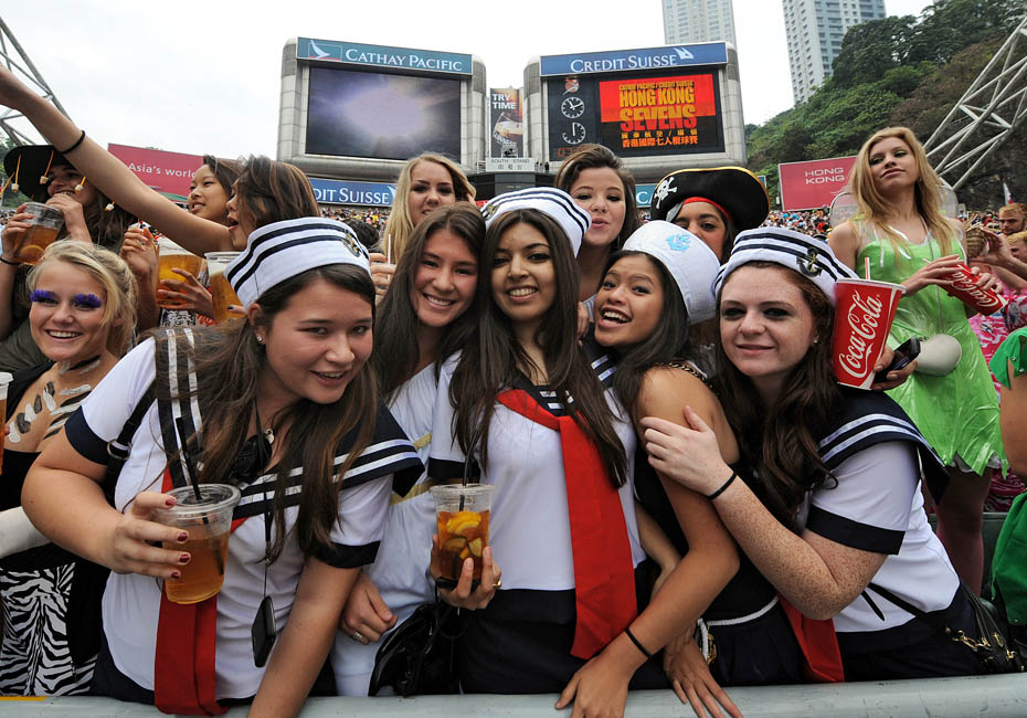 近日,“香港國際七人欖球賽”在大球場開鑼。來自世界各地的球迷盛裝捧場,狂樂連場賽事。圖片來源:中國新聞網(wǎng)