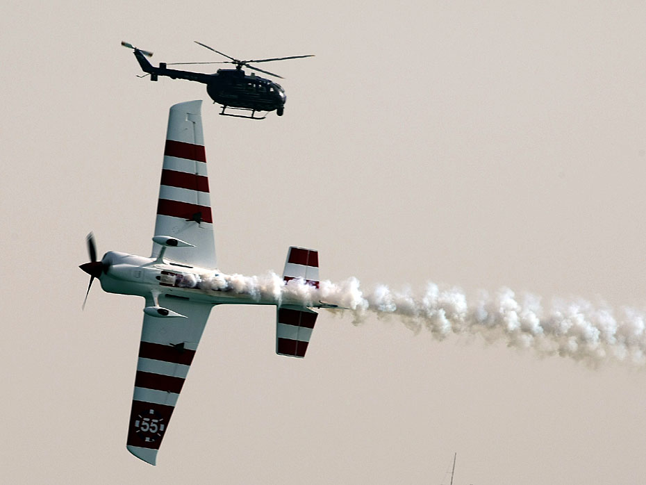 近日,紅牛飛行系列賽世界錦標(biāo)賽預(yù)選賽在阿拉伯聯(lián)合酋長(zhǎng)國(guó)阿布扎比舉行。參加比賽飛行員不但要有高速的駕駛技術(shù),還要有勇往直前的膽量。圖片來(lái)源:中國(guó)新聞網(wǎng)