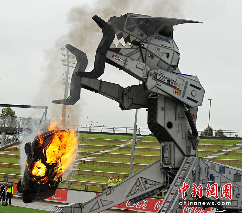 3月30日,一款重約27噸的機器怪獸在澳大利亞悉尼瞬間將一臺汽車摧毀。據(jù)悉,該款機器怪獸是由30多個公司花了兩年時間研究出來的。圖片來源:中國新聞網(wǎng)