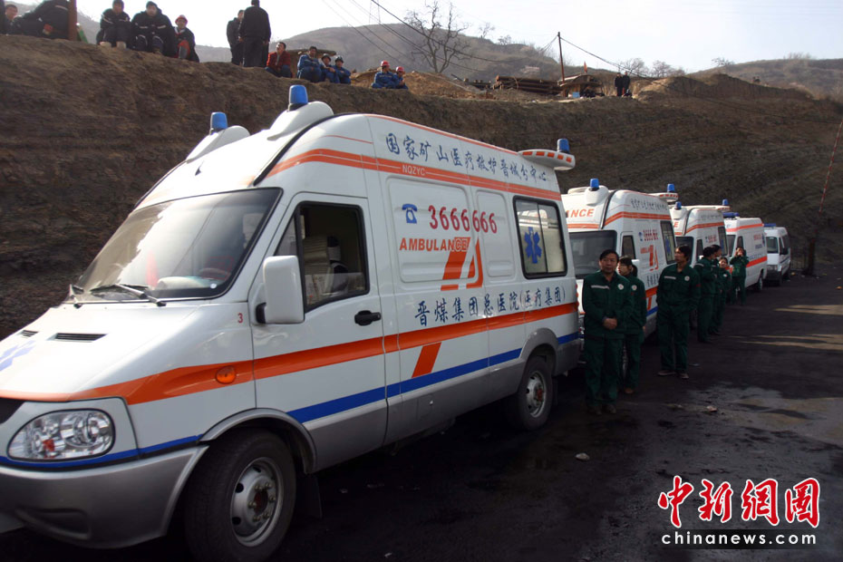 4月3日上午,華晉焦煤公司王家?guī)X礦透水事故第七天,在得到井下有強(qiáng)烈生命反應(yīng)的搶險(xiǎn)人員士氣上得到了極大鼓舞,正在繼續(xù)加大力度排水,現(xiàn)已排水已達(dá)到每小時(shí)1935立方米,水位線下降5.3米,緊急救護(hù)車已到現(xiàn)場24小時(shí)待命,隨時(shí)準(zhǔn)備急救從井下獲救的礦工。中新社發(fā) 張?jiān)?攝
