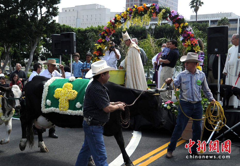 當(dāng)?shù)貢r間4月4日,美國洛杉磯人們在歡慶復(fù)活節(jié)的同時,也為他們的寵物舉行了祝福儀式。這項祝福儀式每年舉行一次。圖片來源:中國新聞網(wǎng)
