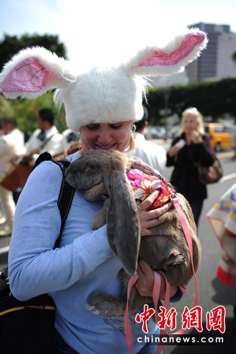 當?shù)貢r間4月4日,美國洛杉磯人們在歡慶復(fù)活節(jié)的同時,也為他們的寵物舉行了祝福儀式。這項祝福儀式每年舉行一次。圖片來源:中國新聞網(wǎng)