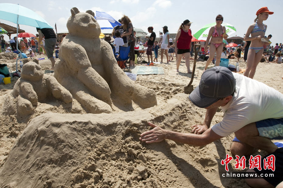 4月5日,以色列國家公園和自然保護(hù)區(qū)管理局在北城鎮(zhèn)Beit Yanai舉行了一年一度的沙雕大賽。世界眾多國家的沙雕愛好者前來參賽。圖片來源:中國新聞網(wǎng)