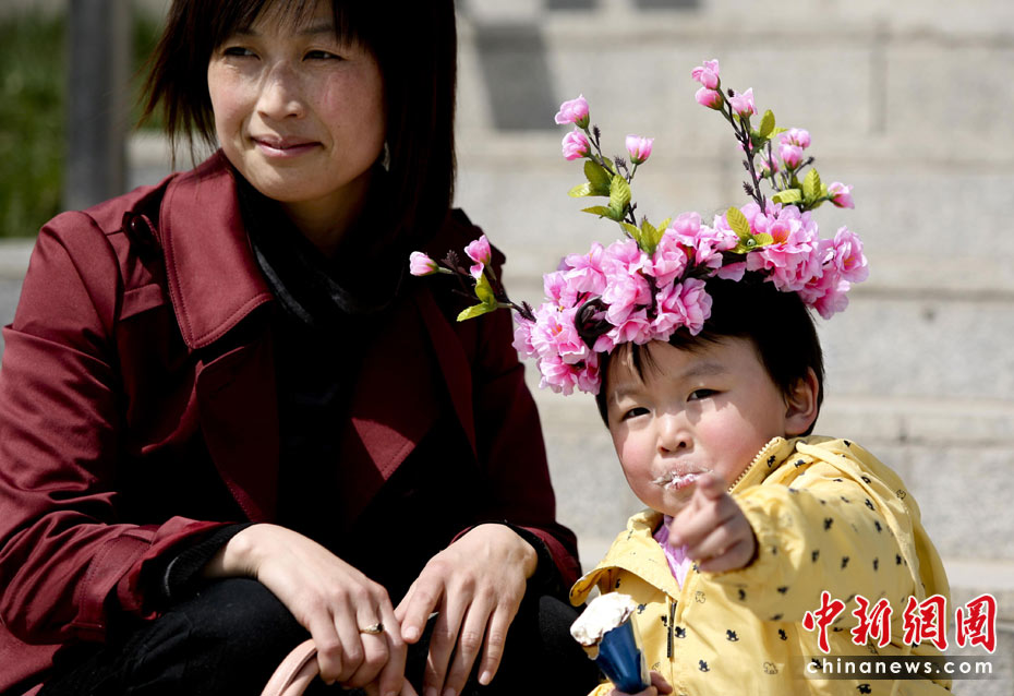 4月4日,北京植物園內(nèi)春桃怒放,眾多游客穿行與花間柳下感受北京遲來的春天。北京植物園2010年第22屆北京桃花節(jié)暨第7屆世界名花展于2010年4月1日至5月5日在植物園隆重舉辦。中新社發(fā) 陸欣 攝