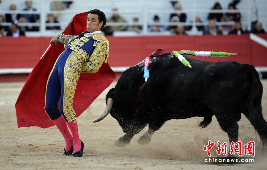 當?shù)貢r間4月5日,法國南部上演了一場精彩的斗牛大賽,慶祝復(fù)活節(jié)的到來。圖片來源:中國新聞網(wǎng)