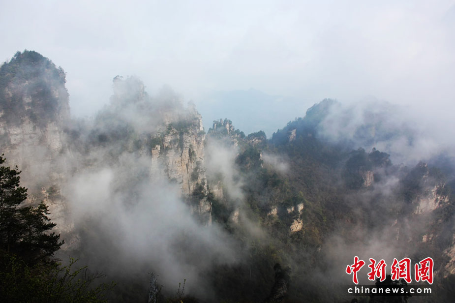 中新網(wǎng)張家界4月8日電(鄧道理 鄧霞)今晨,雨后初晴的湖南張家界天子山景區(qū)出現(xiàn)美麗壯觀的云海奇觀,風(fēng)起云涌之時(shí)砂巖峰林若隱若現(xiàn)、似夢似幻,勝過《阿凡達(dá)》“懸浮山”仙境,令海內(nèi)外游客驚喜不已。
