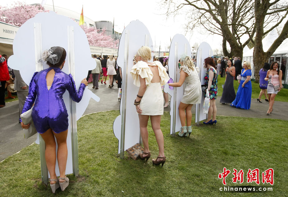 4月9日,英國安特里,女士們盛裝出席安特里賽馬場女士日活動。