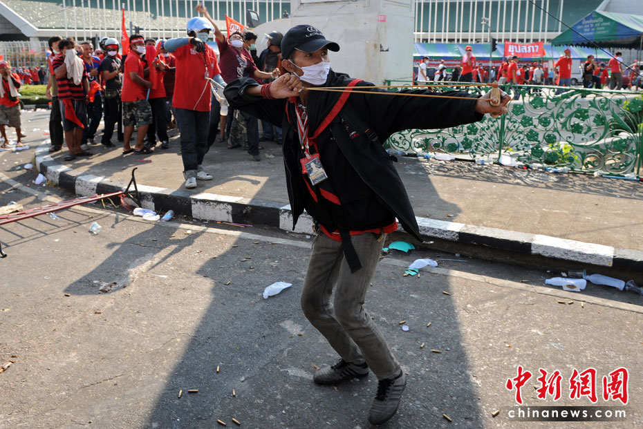 4月10日,泰國軍隊在首都曼谷對支持前總理他信的“紅衫軍”進行武力驅散,雙方爆發(fā)嚴重沖突,目前已造成18人死亡,數(shù)百人受傷。圖片來源:中國新聞網