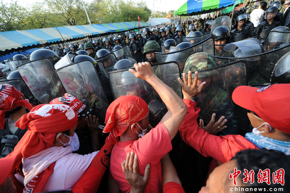 4月10日,泰國軍隊在首都曼谷對支持前總理他信的“紅衫軍”進行武力驅(qū)散,雙方爆發(fā)嚴重沖突,目前已造成18人死亡,數(shù)百人受傷。圖片來源:中國新聞網(wǎng)