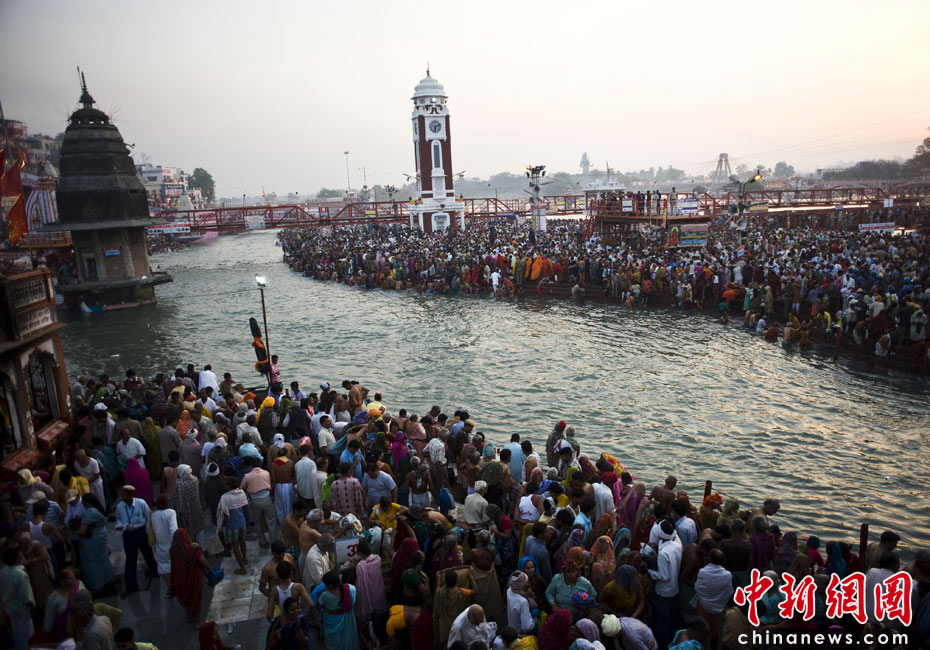 4月13日,印度教傳統(tǒng)節(jié)日“大壺節(jié)”步入尾聲,前來(lái)參加盛典的上萬(wàn)苦行僧赤裸身體涌入恒河,祈求洗清身上的“罪惡”。圖片來(lái)源:中國(guó)新聞網(wǎng)